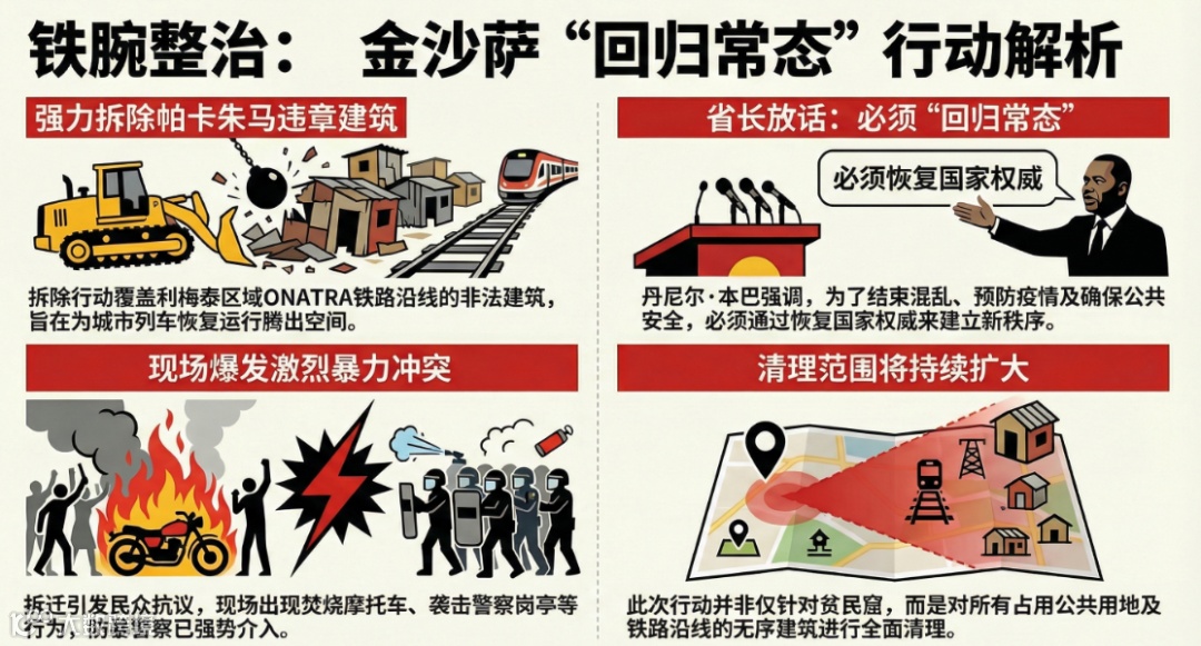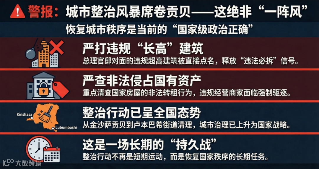 ⚠️ 近日,金沙萨城市上空不仅有推土机的轰鸣,还有不少商家的叹息。从贫民窟到核心商务区,一场名为“回归常态”的风暴正在席卷全城。在刚打拼的同胞们,这场行动到底意味着什么?我们该如何避险?阅读本文前,请先点击上方蓝字关注,获取最新商业情报。