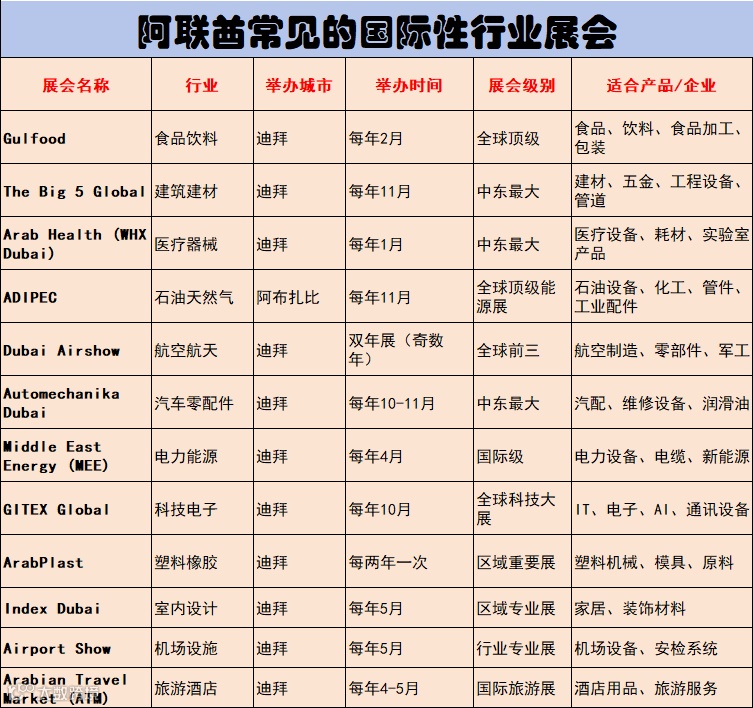 阿联酋常见的国际性行业展会: