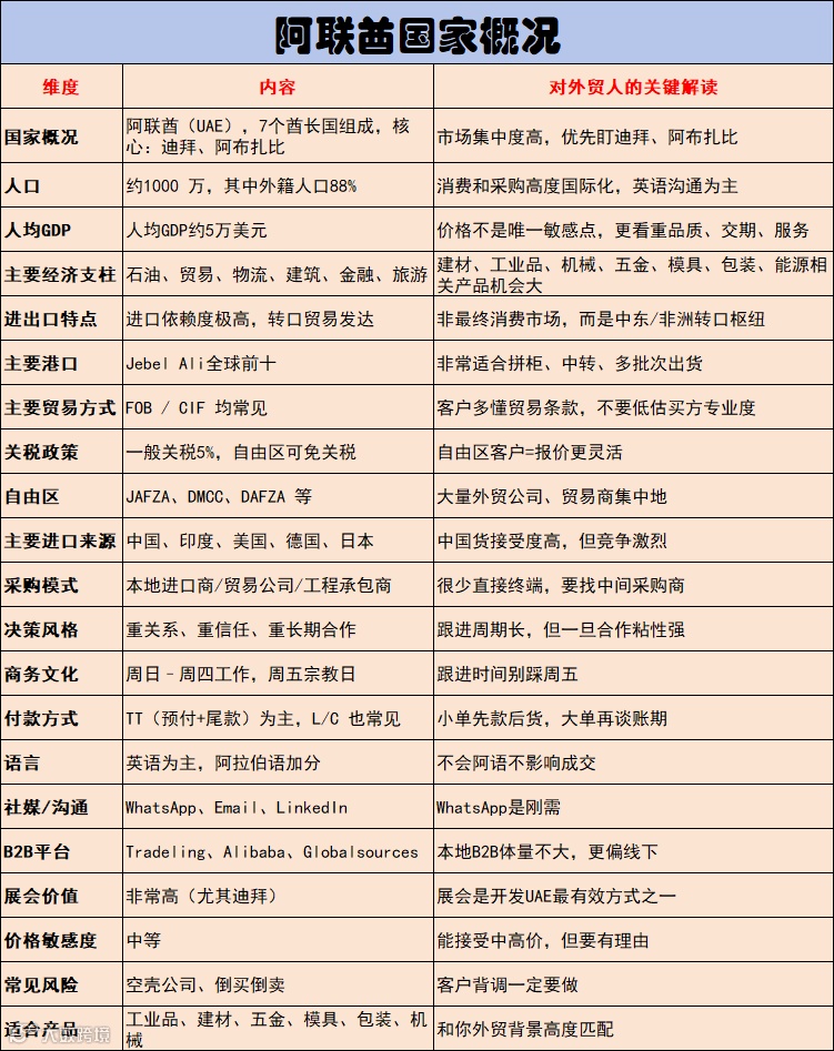 开发阿联酋市场之前,先了解一下阿联酋的一些基本情况。