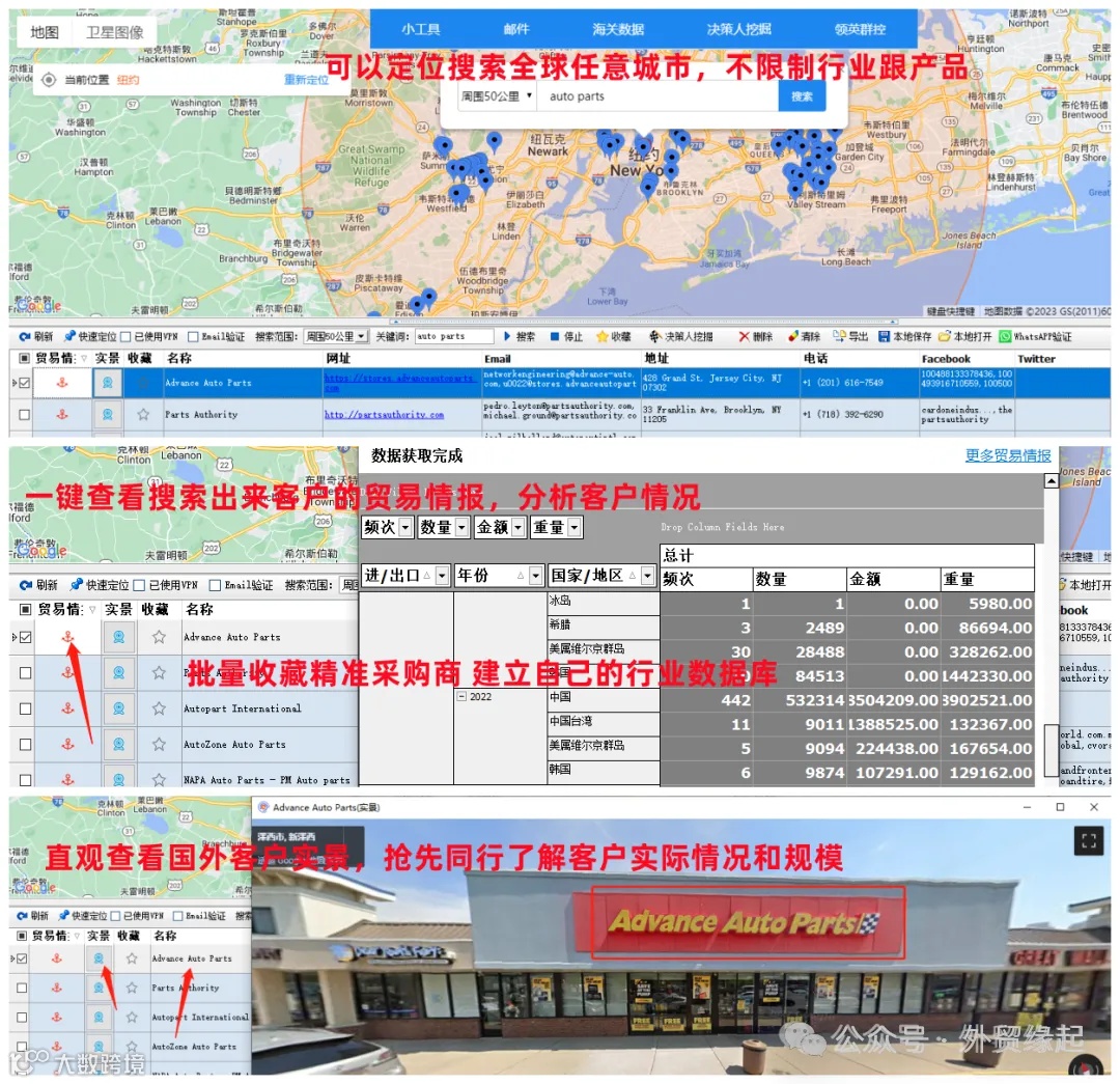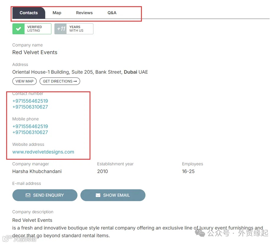 谷歌地图是全球最大的地图服务商,阿联酋大部分都用谷歌地图,可以搜索到可以的公司名字、网站、电话、邮箱以及社媒等等联系方式,而且可以看到实景信息,是非常不错的开发客户方式。