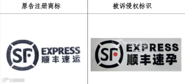 法院指出,被诉侵权标识与涉案驰名商标核心要素高度近似,中文“顺丰速”三字完全一致,“孕”与“运”读音相同,且二者均含有四条弧线包围的“SF”英文大写字母、“EXPRESS”英文单词,故二者在构成要素上高度近似。且涉案驰名商标的主要使用方式包括将该商标贴附于运输车辆上标识其快递服务来源,被诉侵权产品亦用于贴附装饰车辆,二者的使用方式基本一致,相关公众容易对二者产生相当程度的联想。