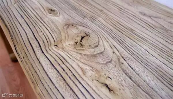 ③ 莫桑比克皮灰木(风车木):颜色为灰黄色,老木颜色接近灰黑色,毛孔粗大,有明显毛状纹,其木纹走向多呈山纹状,条纹状少见,木纹颜色为黑黄交替。