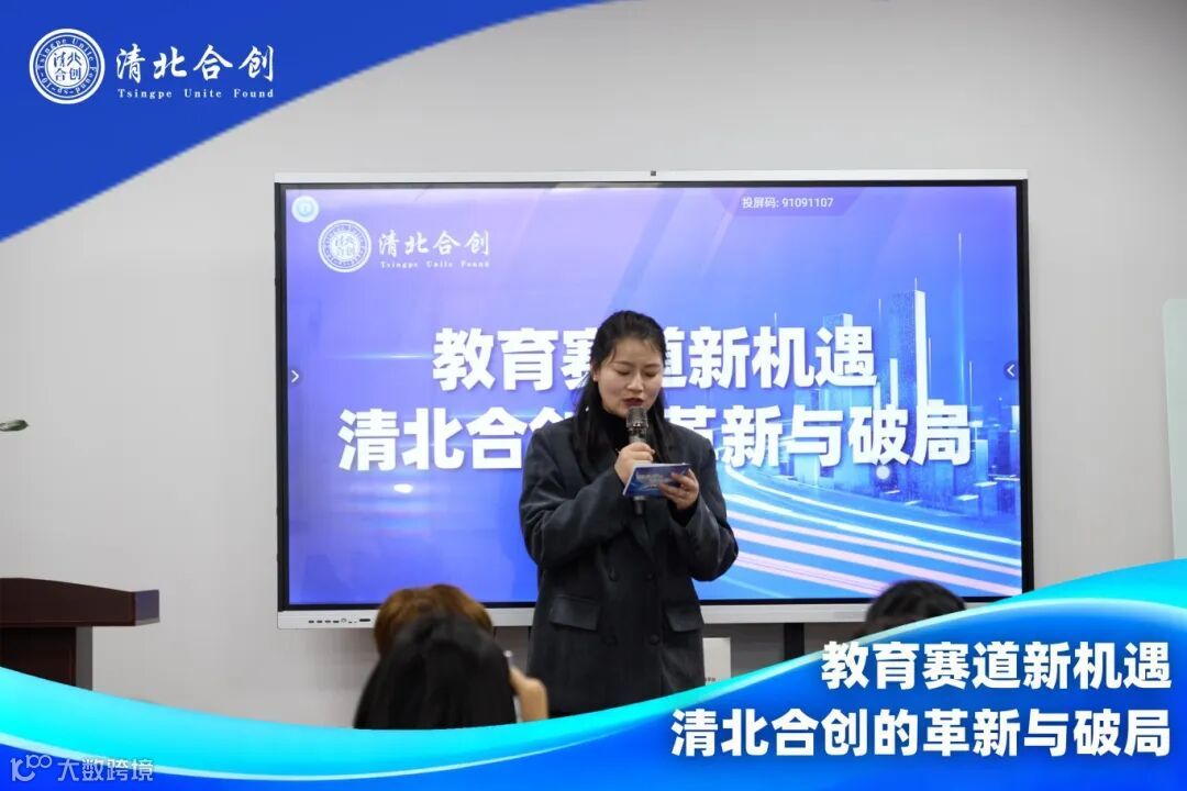 在珍珍姐的精彩分享落幕、全场掌声未歇之际,张总重磅登台,以「危机育新机:清北合创的财富破局之道」为核心,结合自身加盟清北合创的实战经历与行业洞察,为在场宾客深度解读教育赛道的加盟新机遇,解锁财富破局密码,引发全场高度关注。