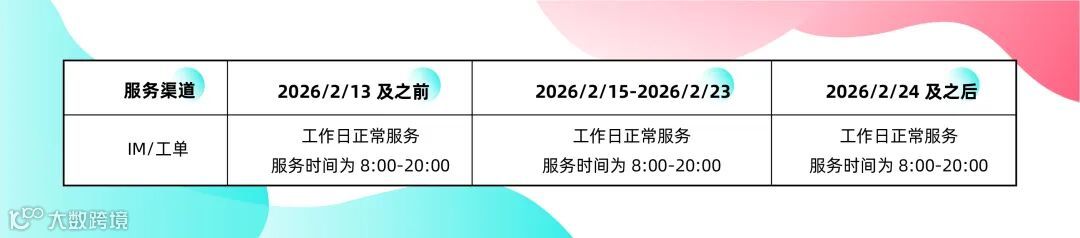 边境仓:2月16日(除夕)–18日(初二)放假。