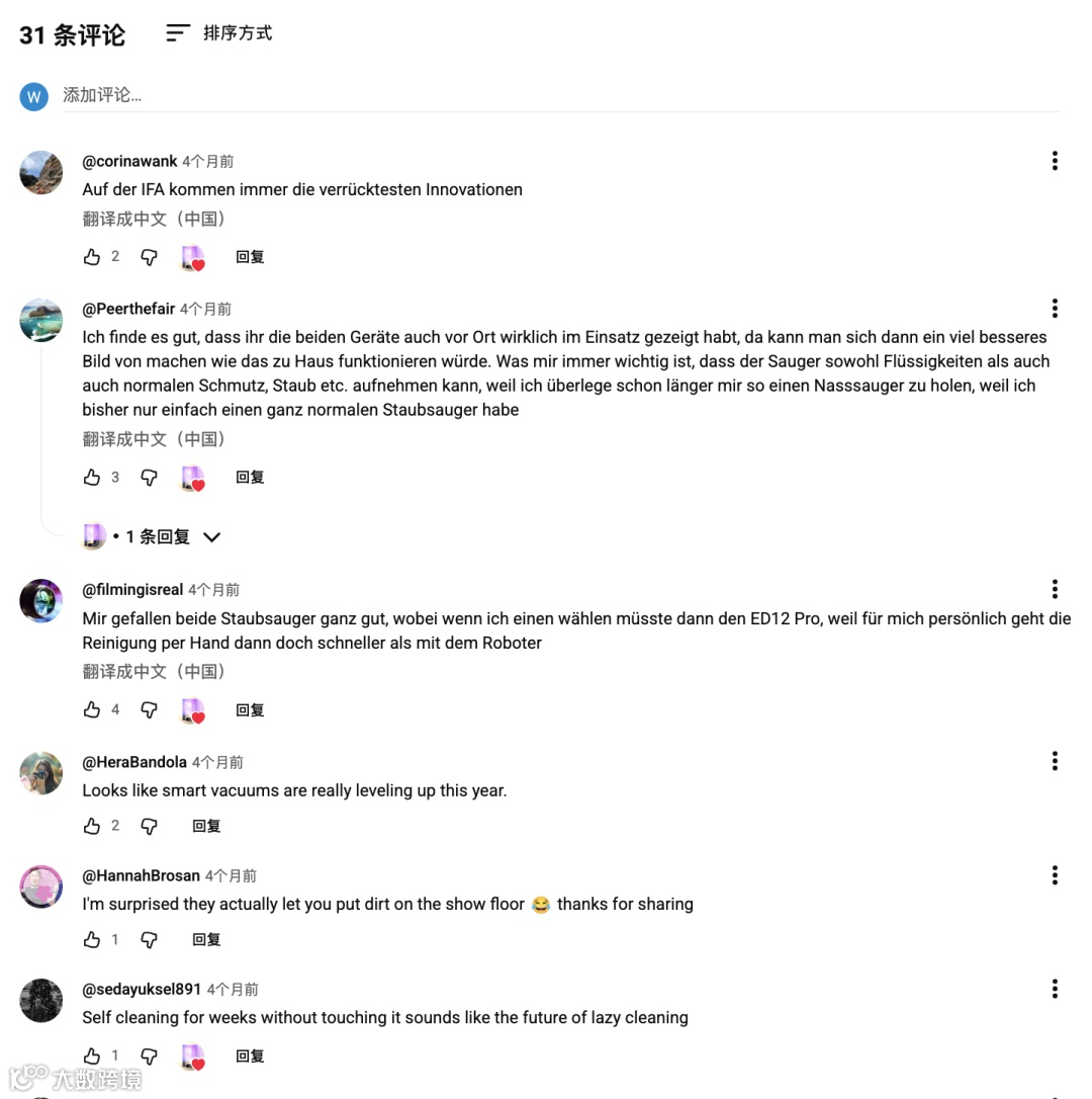 近期发布的Tineco Floor One S9 Artist Steam评测视频上线两周即获1.8万播放量、468个点赞及132条深度互动评论,用户关注点集中于清洁效果与实际体验,印证该策略对目标人群的有效触达。通过Vacuum Wars的专业镜头,Tineco成功强化了“高效、可靠、高品质”的高端清洁家电品牌形象。