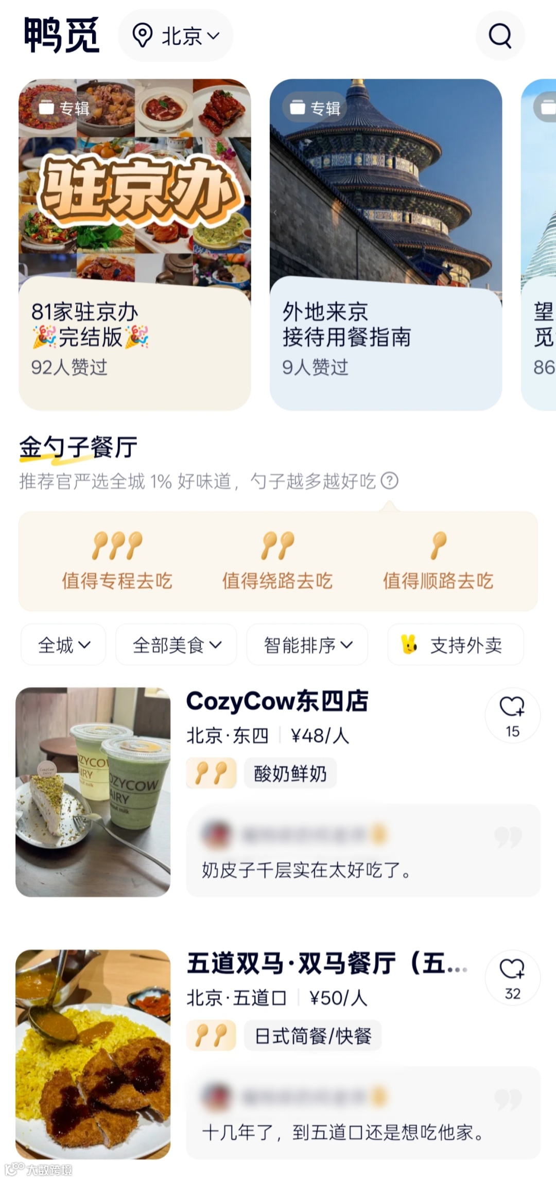 除大众点评外,美团推出非商业化美食社区“鸭觅”,采用“推荐官”机制,由官方遴选食客或厨师担任内容创作者。