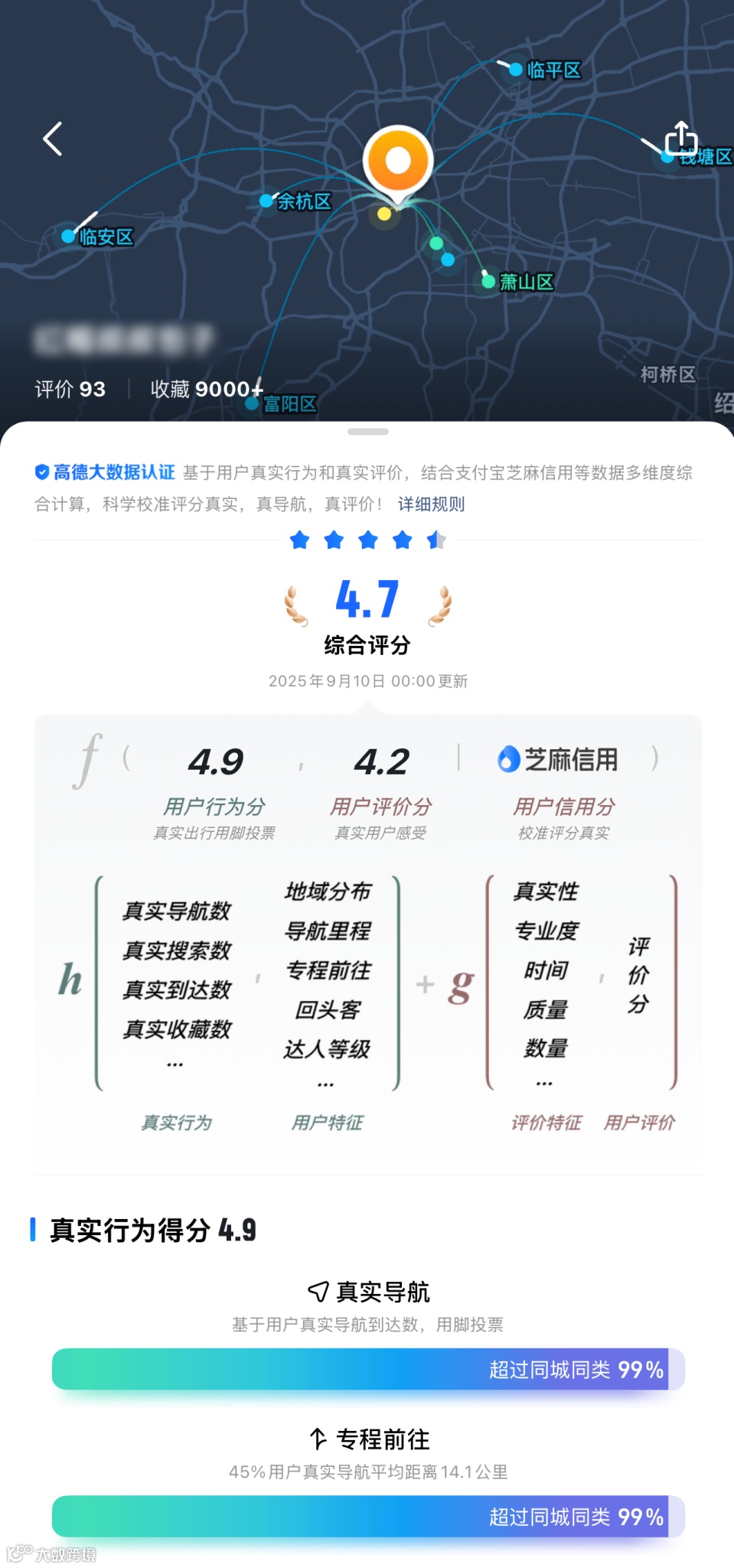 与传统榜单不同,高德扫街榜融合用户导航、搜索、收藏及真实到店行为数据,结合评价反馈,减少刷分注水现象,提升榜单真实性,降低消费者决策成本。