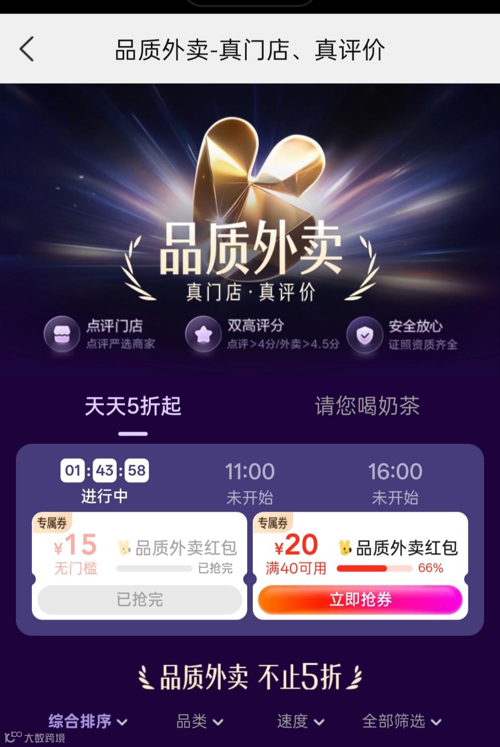 2024年6月起,大众点评对“品质外卖”栏目进行改版,入驻商家须为平台严选商户,评分要求堂食>4分、外卖>4.5分,并具备完整证照资质,打出“真门店,真评价”口号。