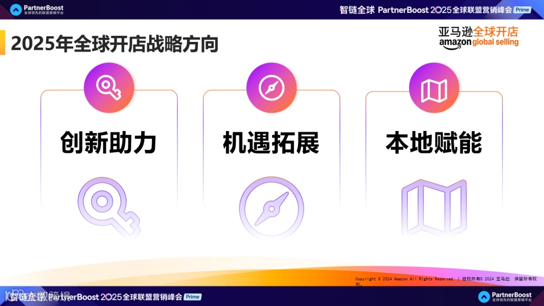 亚马逊2025年的战略方向聚焦于“创新助力、机遇拓展与本地赋能”三大支柱,体系化地支持中国卖家开拓全球业务。