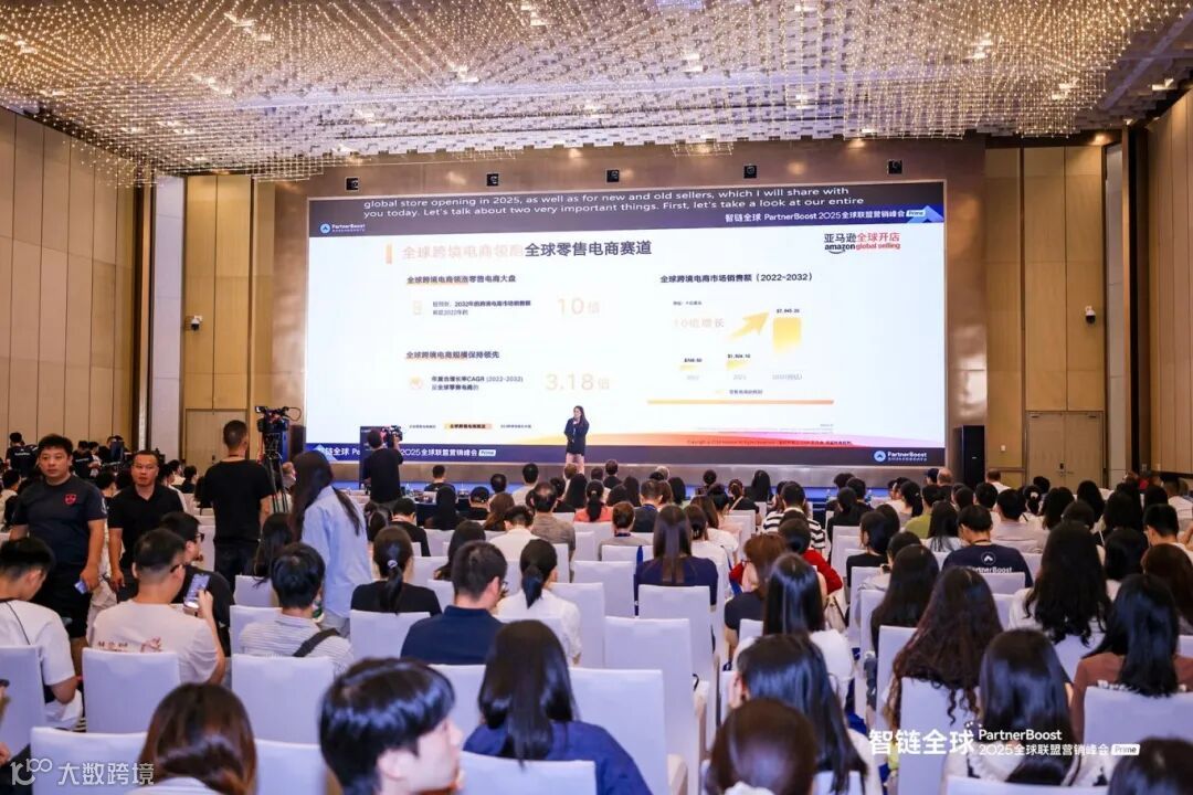 亚马逊全球开店华南大区区域拓展负责人Scarlet Fu在PartnerBoost主办的2025「智链全球」全球联盟营销峰会中指出2022至2032年间,全球跨境电商销售额预计实现十倍增长,其增速是全球零售电商的3.18倍。区域市场呈现多极化发展态势:中东非洲以30.2%的年复合增长率领先,拉丁美洲达29.9%,欧洲与日本均保持29.0%的稳健增长。