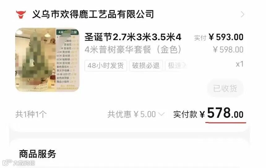 高利润意味着更低的出单量需求,不仅减轻运营压力,在售后处理、物流协调等方面也显著降低工作强度。例如某款进价578元、售价452美元的圣诞树,扣除各项成本后净利润约1000元。