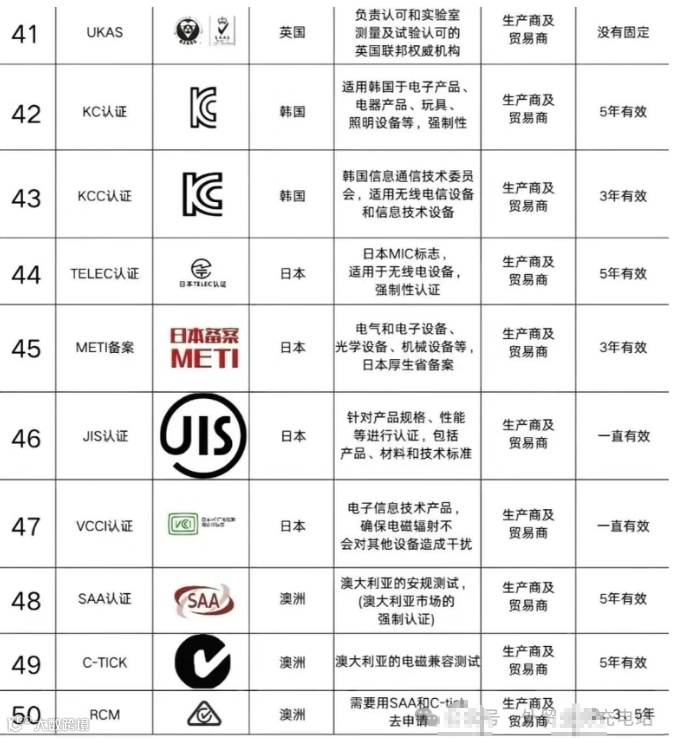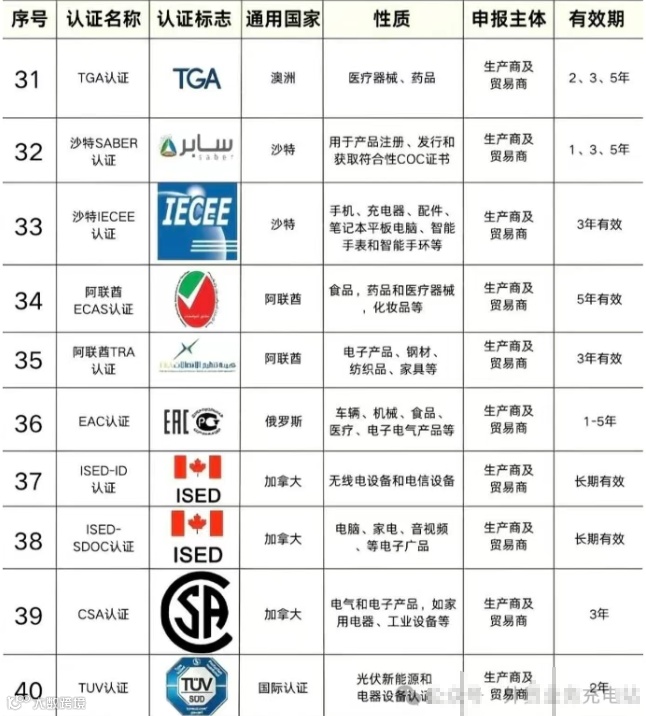 注:部分认证如SASO、INMETRO等需根据具体产品查询最新政策要求。