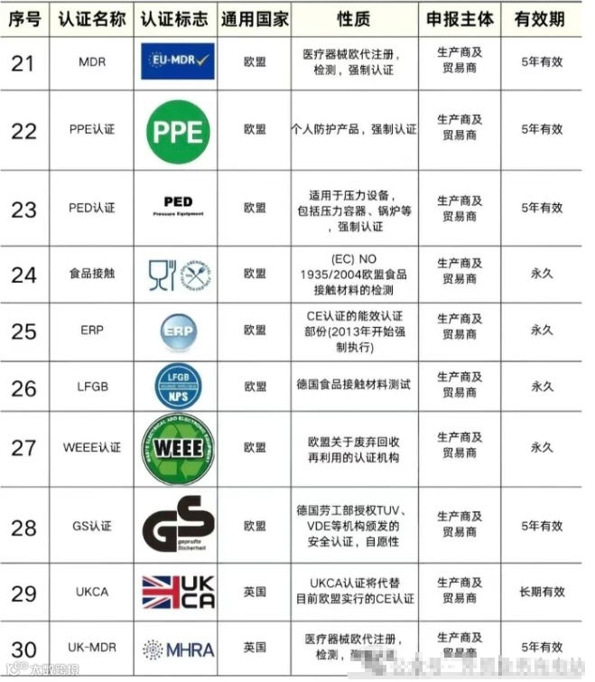 - ERP认证:能效相关产品需符合的生态设计指令。