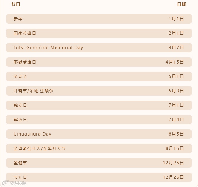- 官方语言:卢旺达语、英语、法语、斯瓦希里语