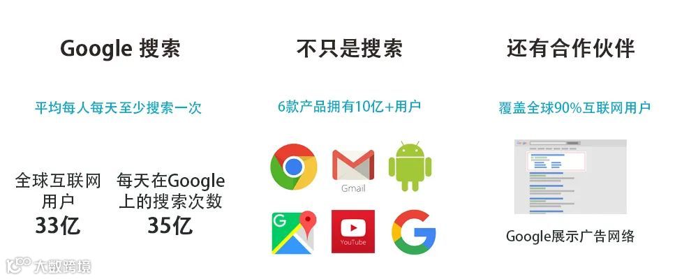 Google不仅拥有庞大的客户群体,它的精准度也比较高,跟其他普通渠道相比,客户对于Google的意向度更大。Google在搜索引擎市场占有绝大部分地位。