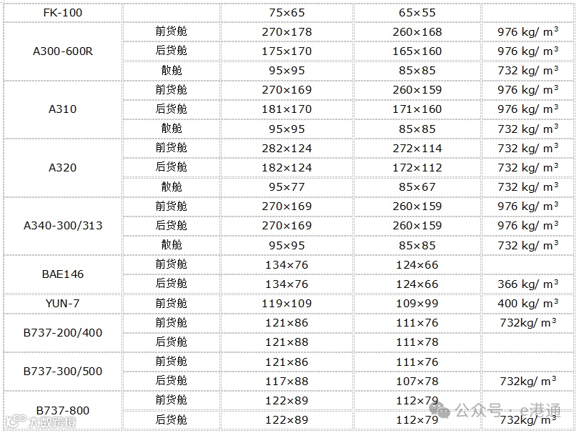 备注:B737系列机型属于窄体机,无散舱,不接托盘货,货物单件毛重不能超过80KGS