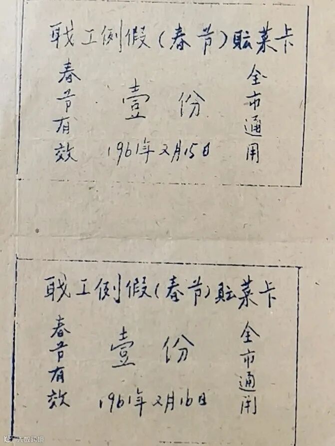 一张1961年的职工春节购菜卡,看见了物资并不丰裕的年代,人们精打细算筹划一桌像样的年夜饭。