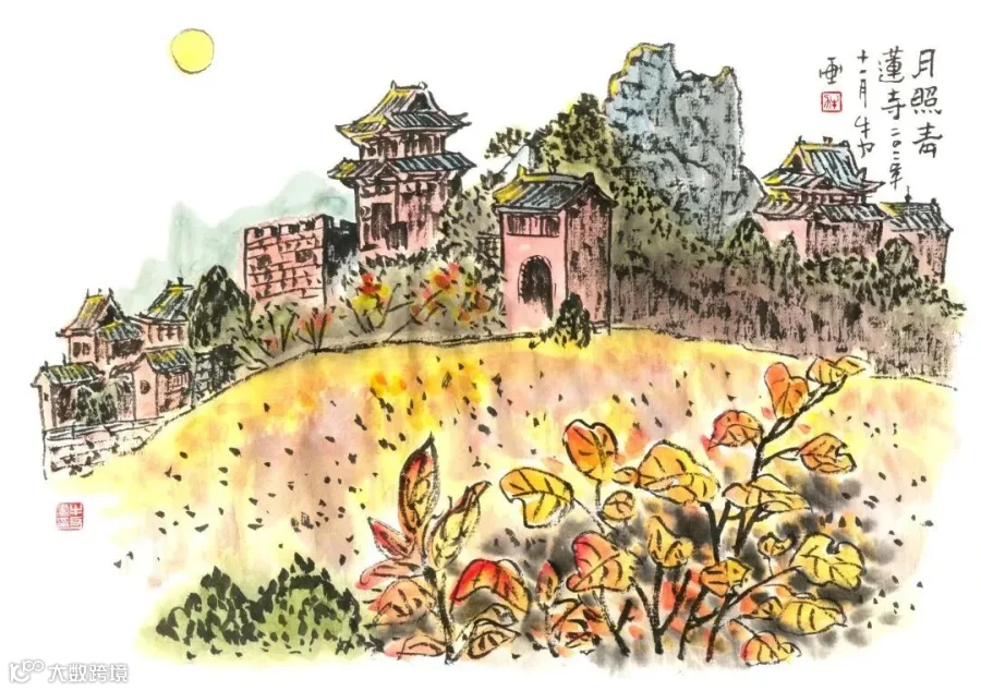 ▲月照青莲寺 牛力 绘制