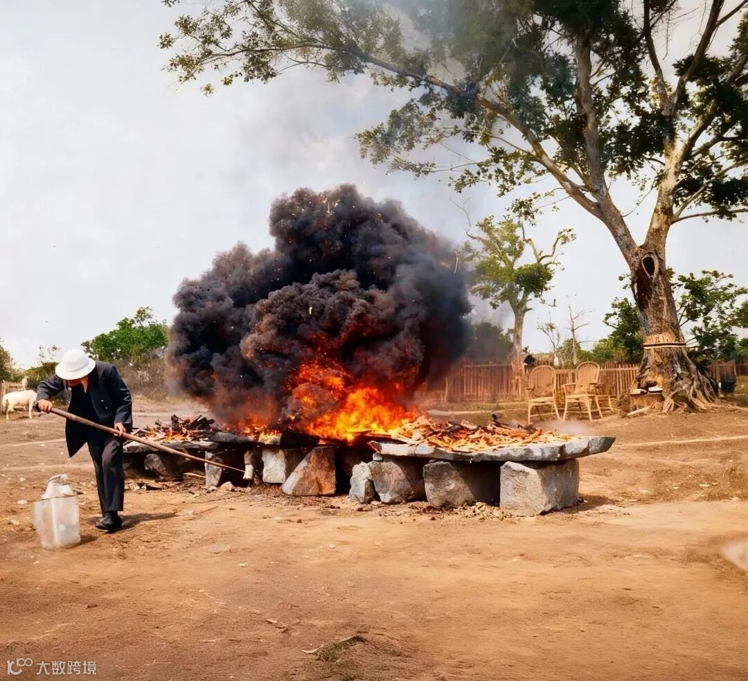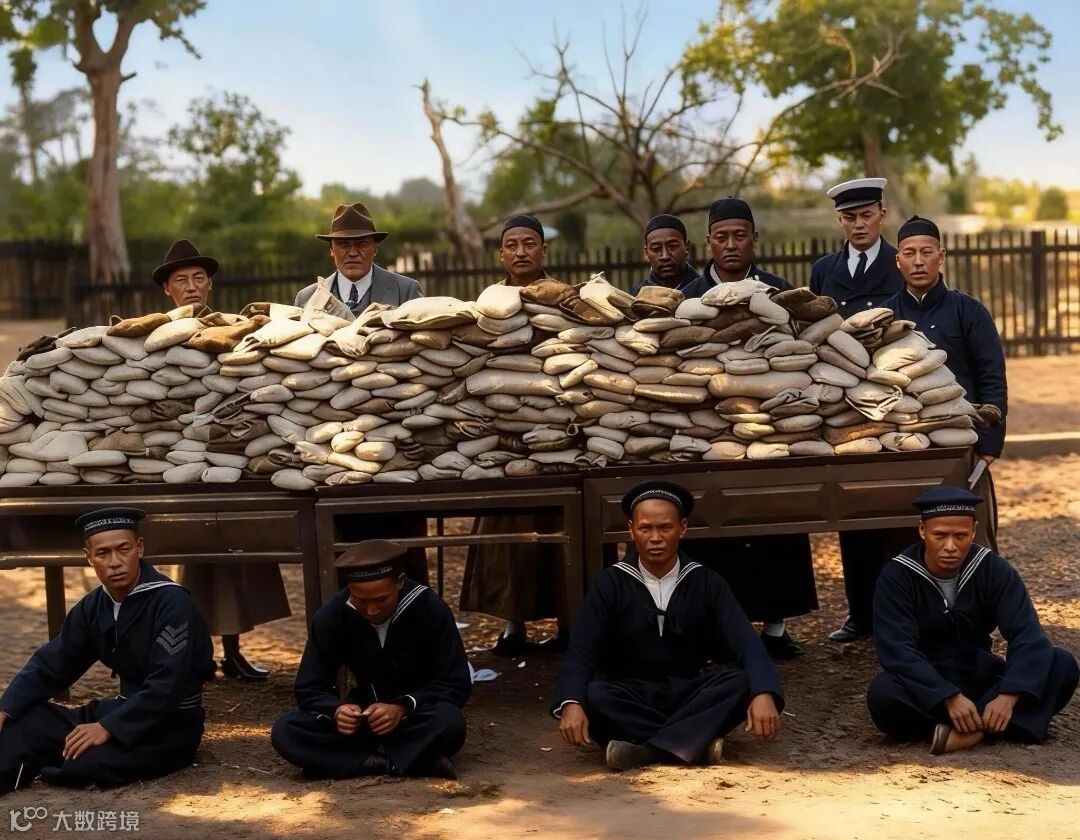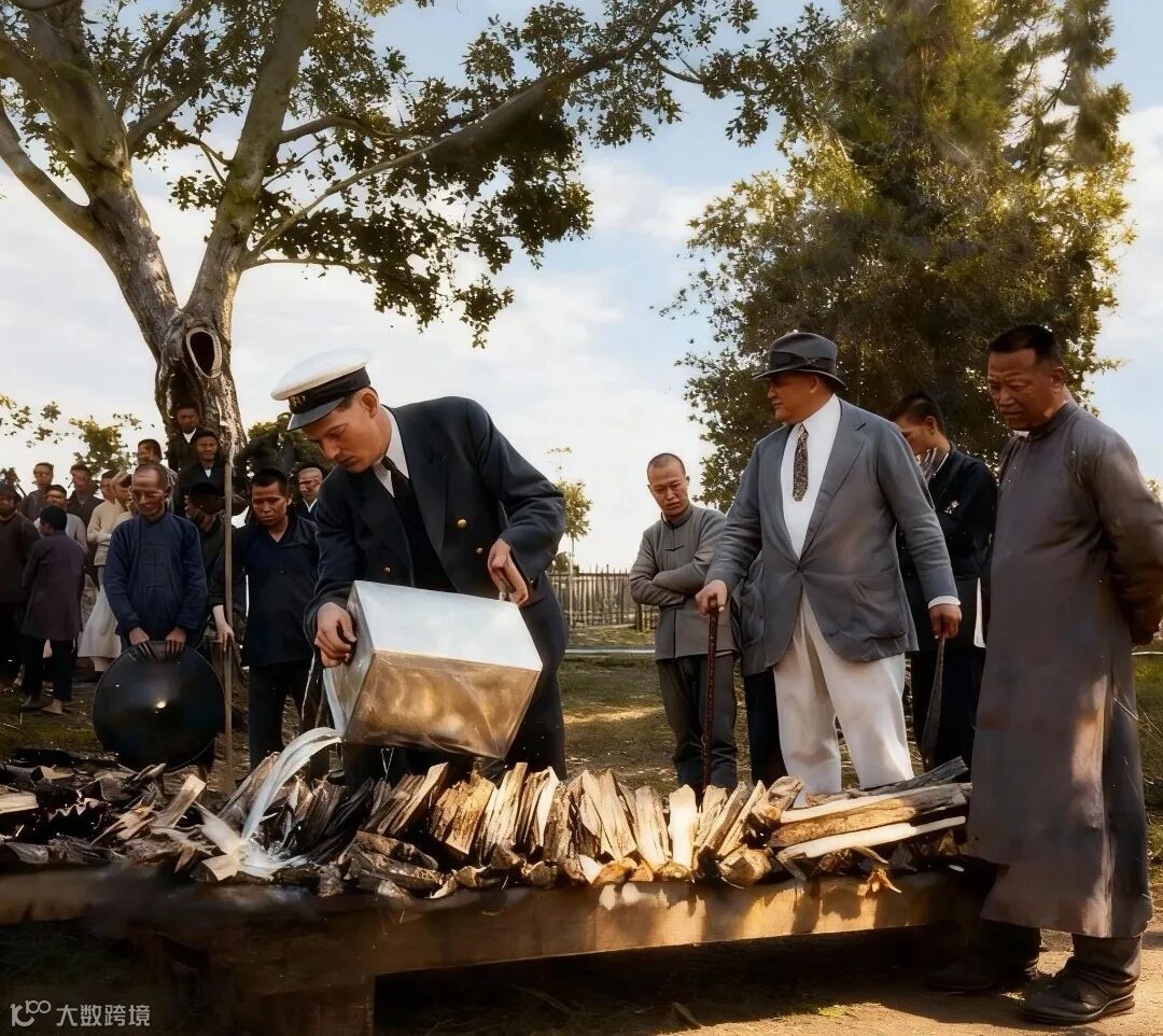 上五图为1920年,广西南宁海关销毁鸦片的照片。其海关负责人为外国人