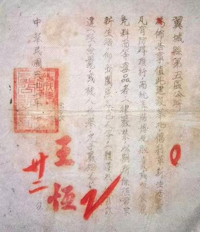上图为1942年,山西翼城县第五区布告:一律严禁赌博、贩卖或吸食鸦片、料面等
