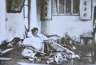 上图为清末国人吸食鸦片