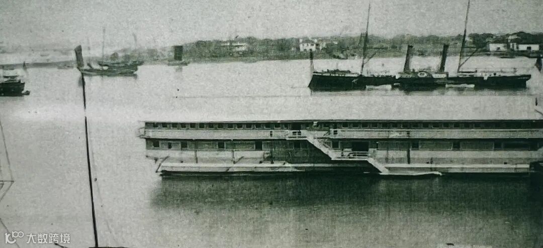 上图为上海黄浦江上运输鸦片的趸船