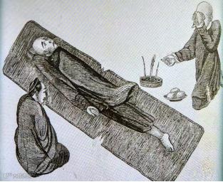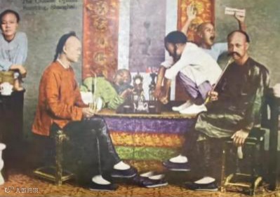 上图为1900年法国画报载《吸食鸦片的中国人》