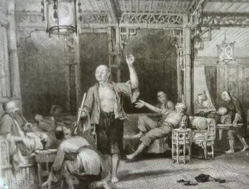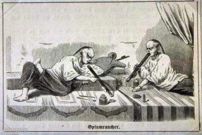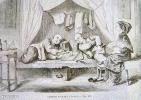 上图为1875年,苏格兰版画《吸食鸦片》
