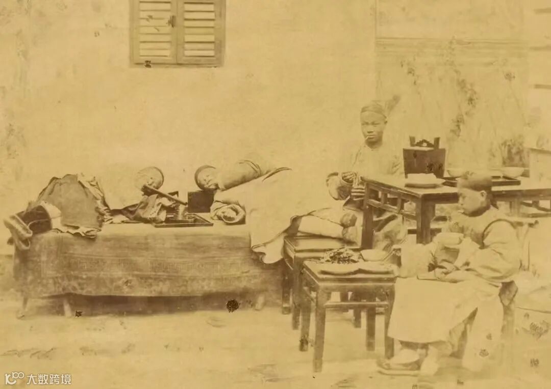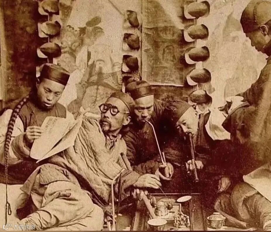 上图为清末吸食鸦片