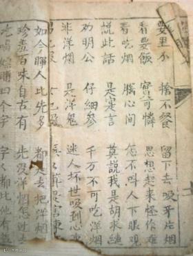 上图为同治年间印制的,劝人不要吸食鸦片的《唱本》