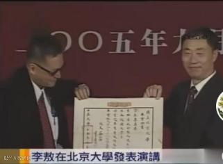 上图为2005年9月21日,李敖在北京大学演讲时,北京大学赠送李敖父亲学籍照