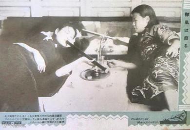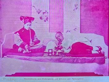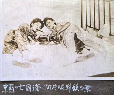上两图为日本人发行的明信片《吸食鸦片的女人》