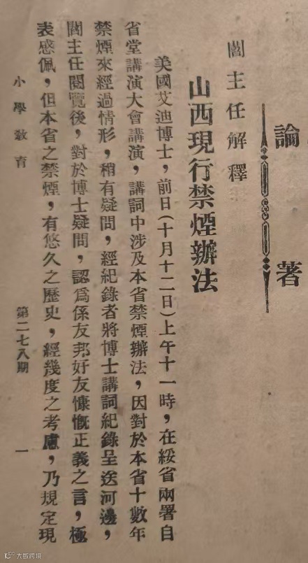 上图为1934年11月,民国山西《小学教育》杂志278期登载的《山西现行禁烟办法》