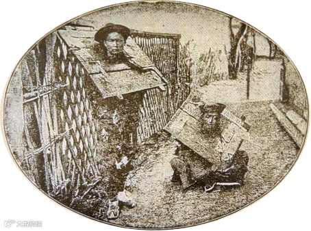 上图为1903年版画《戴枷游街的吸食鸦片者》