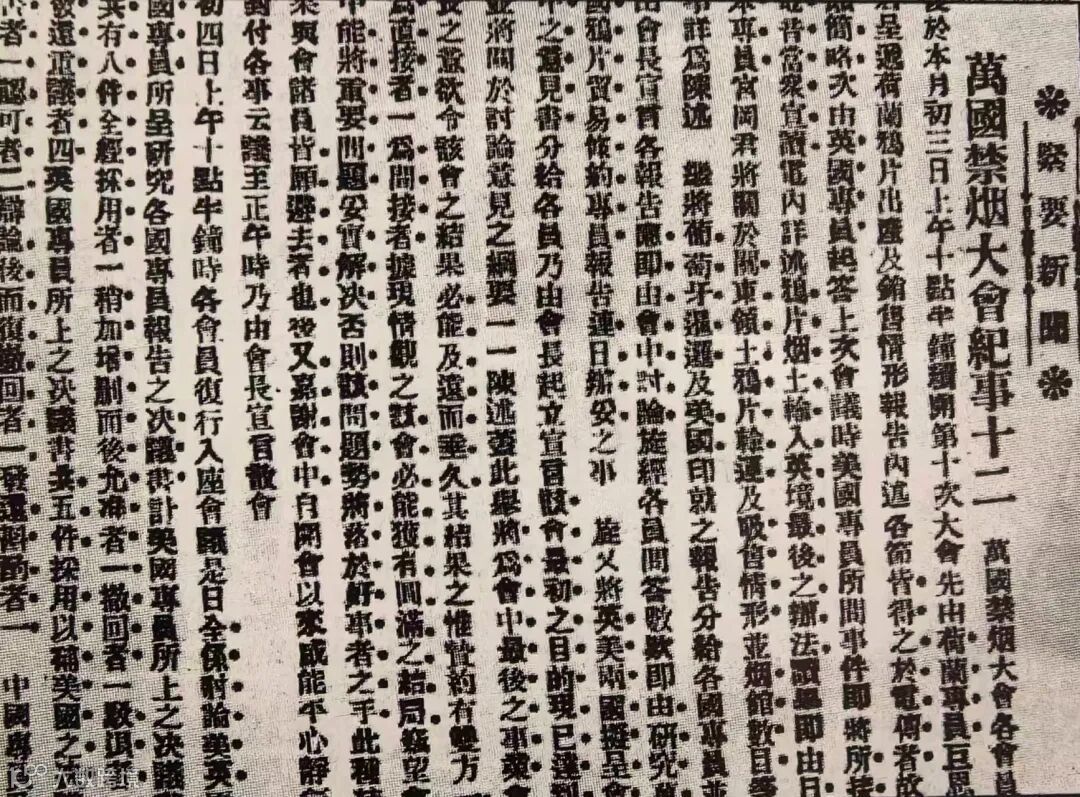 上图为1909年2月23日,上海《申报》报道了万国禁烟会