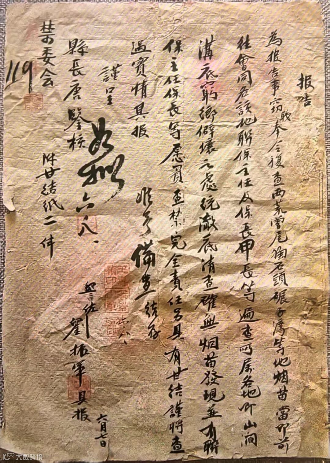 上图为民国后期,甘肃靖远县禁委会《清查烟苗的报告》