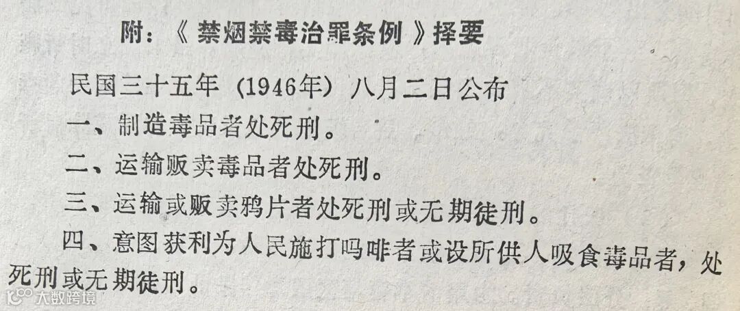 上两图为1946年8月,山西省政府颁布的《禁烟禁毒治罪条例》择要和《肃清烟毒善后办法》择要