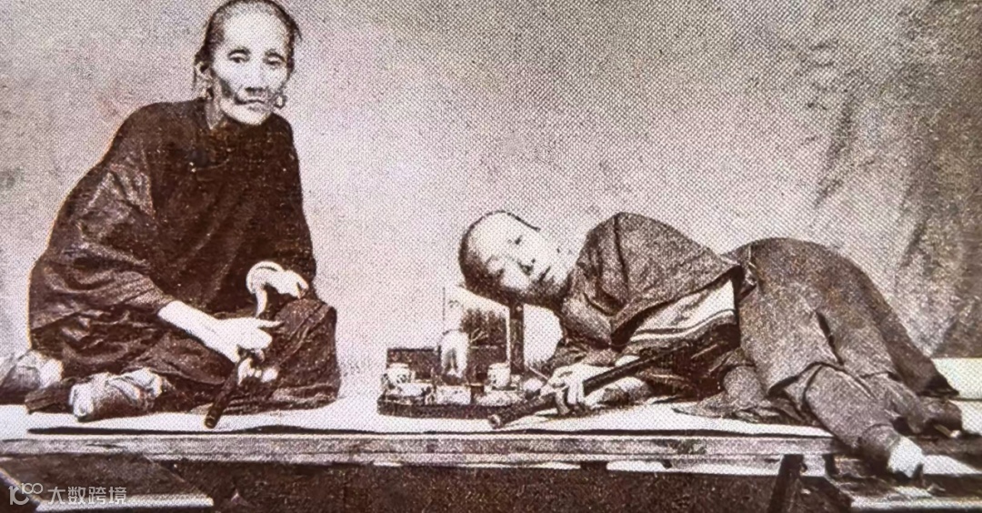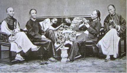 上图为清末吸食鸦片情况