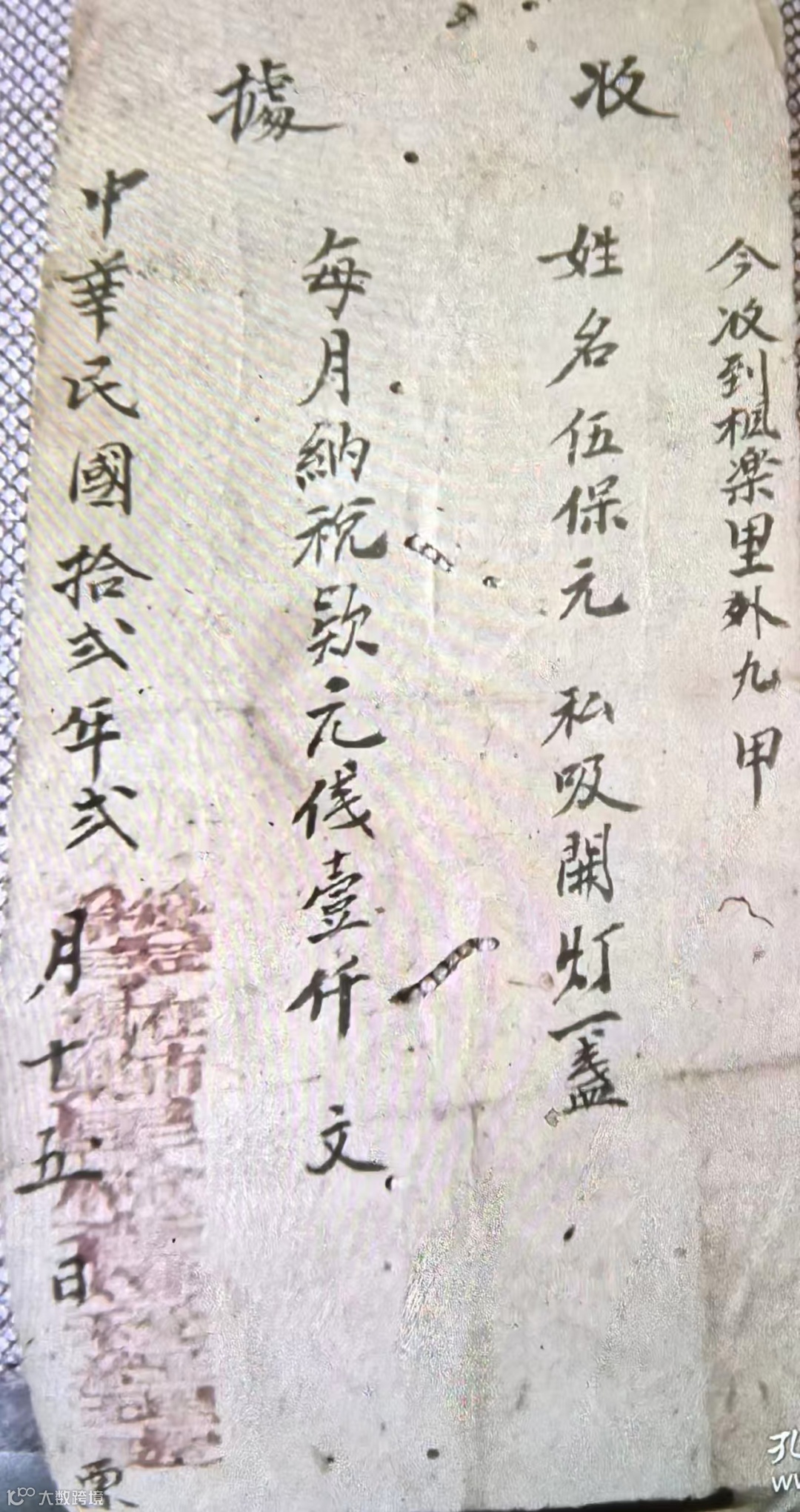 上图为1933年,湖南省绥宁县吸食鸦片开具的酒精灯收据,每月税款达1千文