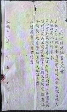 上图为1929年《具甘(愿)结(束)烟馆育廷当(书)》,今当三都三区三段团董台,前实结得民素不吸食鸦片,在境内开设烟馆 。上令实行戒烟,肃清地方在案,遵将烟具凭团烧毁,随时封闭,再不得违犯偷卖,自愿改造营别业,倘有抗令情,弊一经查觉,任凭解送,依法治罪。所结是实,须至甘结者