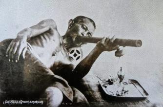 实际上,早在唐高宗乾封二年(667年),中国就出现了鸦片(阿芙蓉)进口的记录。17世纪初,荷兰人通过台湾,把北美印第安人的烟斗,连同烟叶传入中国,始有国人用其包裹鸦片,点燃吸食蒸馏烟雾。18世纪后,纯度更高的吸食方法传遍大江南北。
