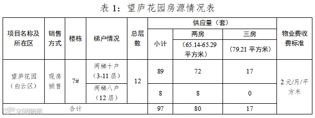 (四)望庐花园和萝岗和苑项目的基本信息(含前期物业服务费、停车费收费标准等)、项目周边影响因素情况说明、红线内不利因素情况说明等在“穗安居”服务号发布和销售现场公示,由安居投资公司或城投住房租赁公司负责解释。申请家庭如发现项目销售现场违反《细则》第八条规定或省、市商品房销售信息公示规定的,可以通过广州政务服务便民热线(联系电话:020-12345)向市住房保障办公室反映。