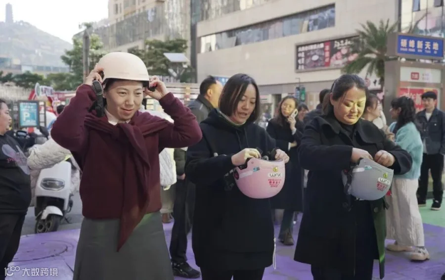 《安全戴头盔》互动游戏也超受欢迎,大家比速度、比规范,用时最短、佩戴最规范的获胜者直接赢走安全头盔。