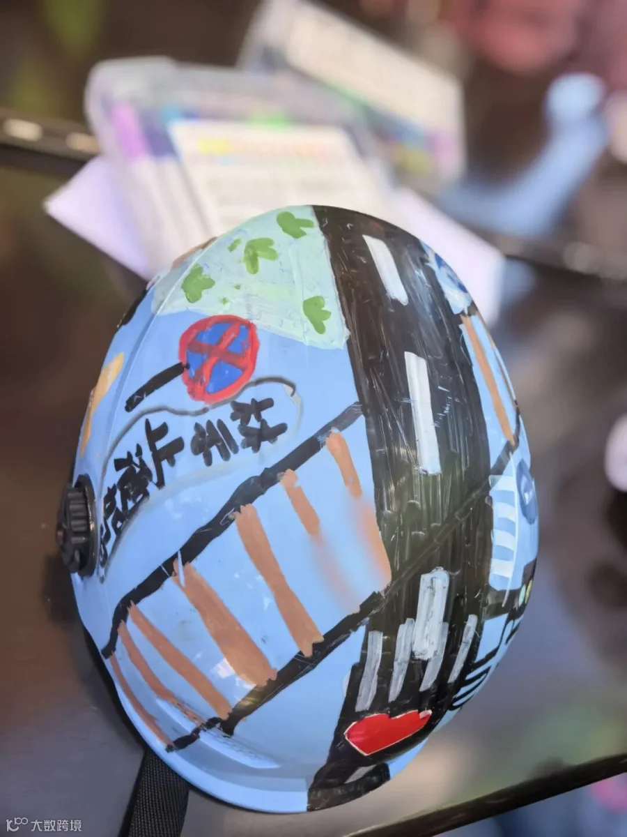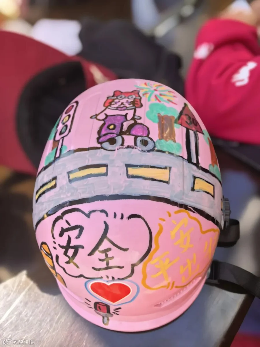 50名由交警、美术老师、邮政公司代表和群众组成的评审团,认真欣赏每一个小朋友的作品,为心仪的作品贴上小红花,小朋友们还简短介绍自己的创作理念,童言童语超可爱。把自己亲手画的平安头盔带回家,让安全守护成长,这份独特的春节礼物超赞!
