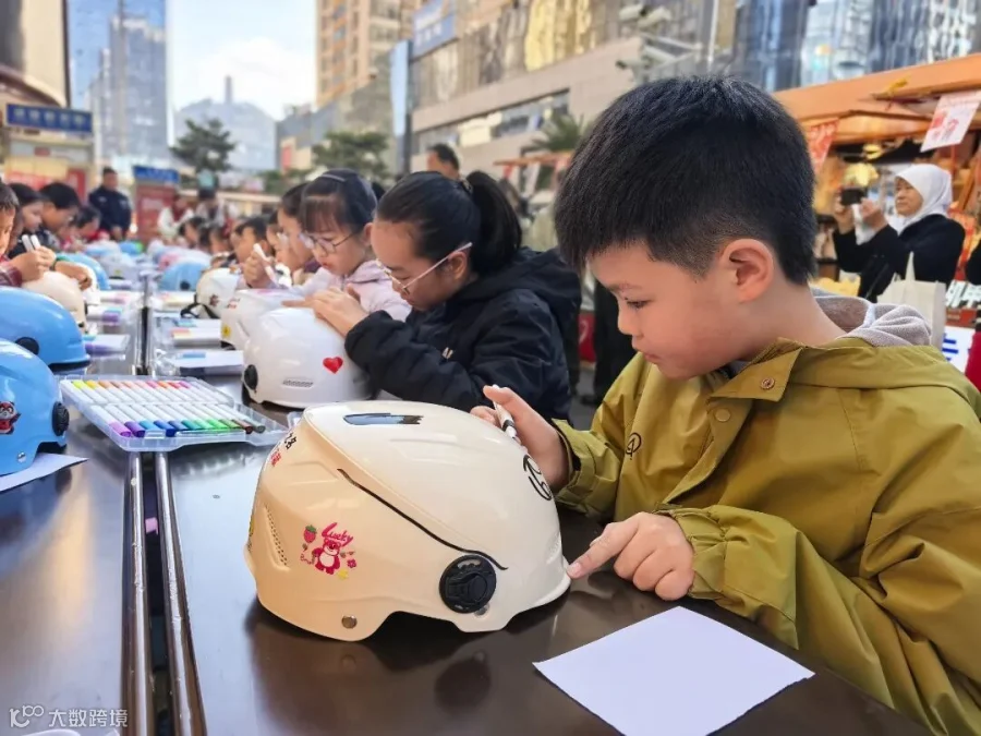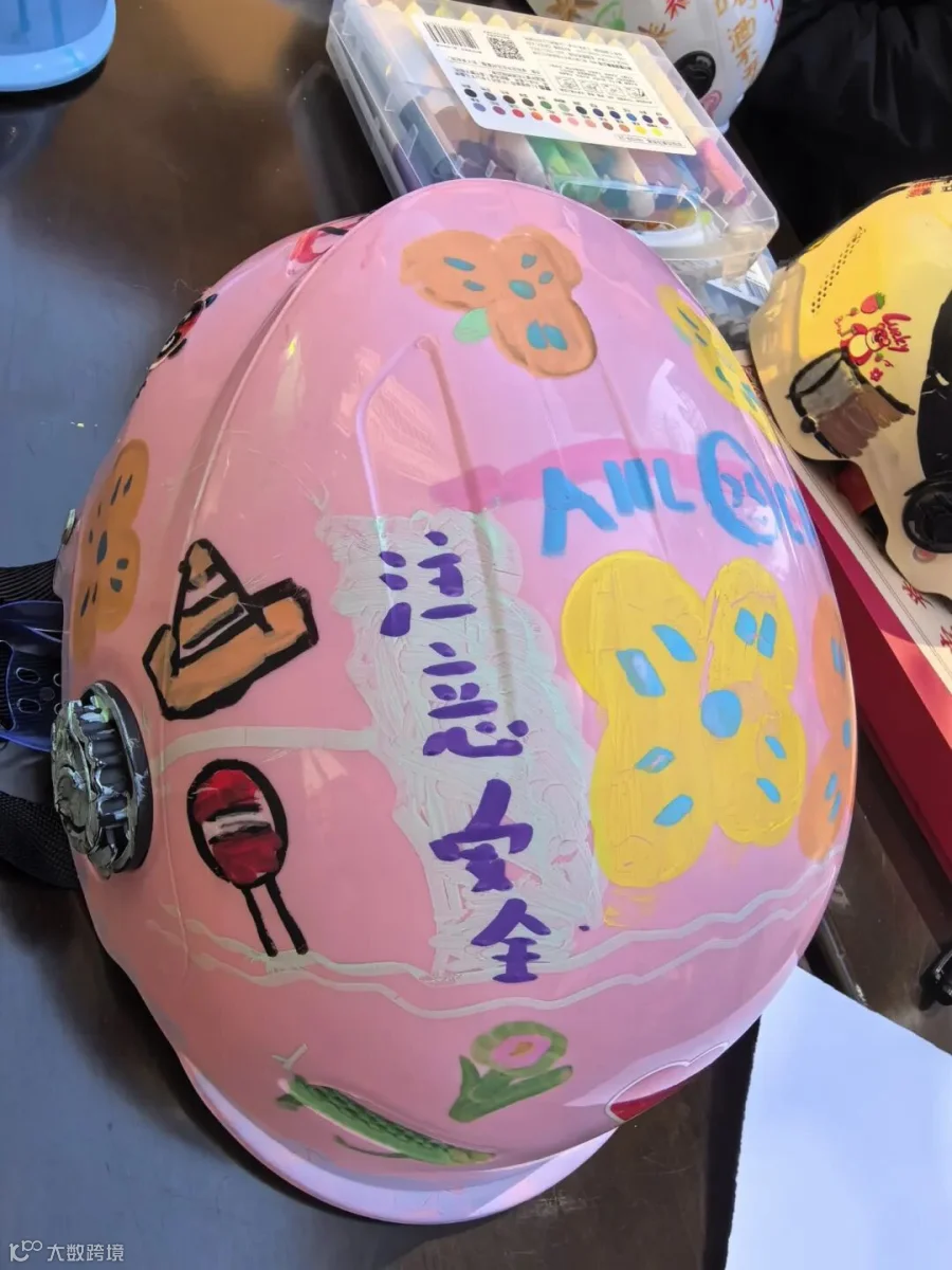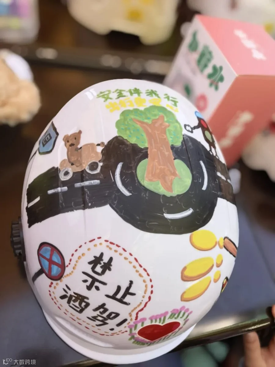 最暖心的环节,当属文山州公安局交通管理支队、文山市公安局交通管理大队联合中国邮政集团有限公司文山州城区分公司,为中小学生携手举办的“安全‘童’行·‘盔’甲有画”交通安全创意头盔绘制活动!孩子们化身小小画家,在空白头盔上尽情发挥想象,用五彩的画笔勾勒出自己心中的“平安”世界。