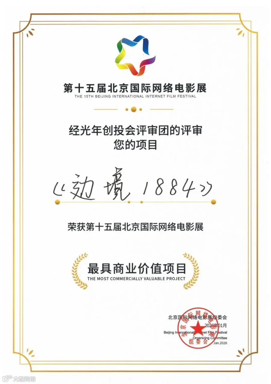 去年10月,《边境1884》在第五届“美丽中国”电影剧本征集评选中荣获“最佳作品奖”,当时活动共收到来自全国各省(市)的380余部参评电影剧本。本届北京国际网络电影展将“最具商业价值项目”奖项颁给《边境1884》,让其从192个报名项目中脱颖而出,表明市场对此类兼具历史深度与民族情怀的作品充满信心。