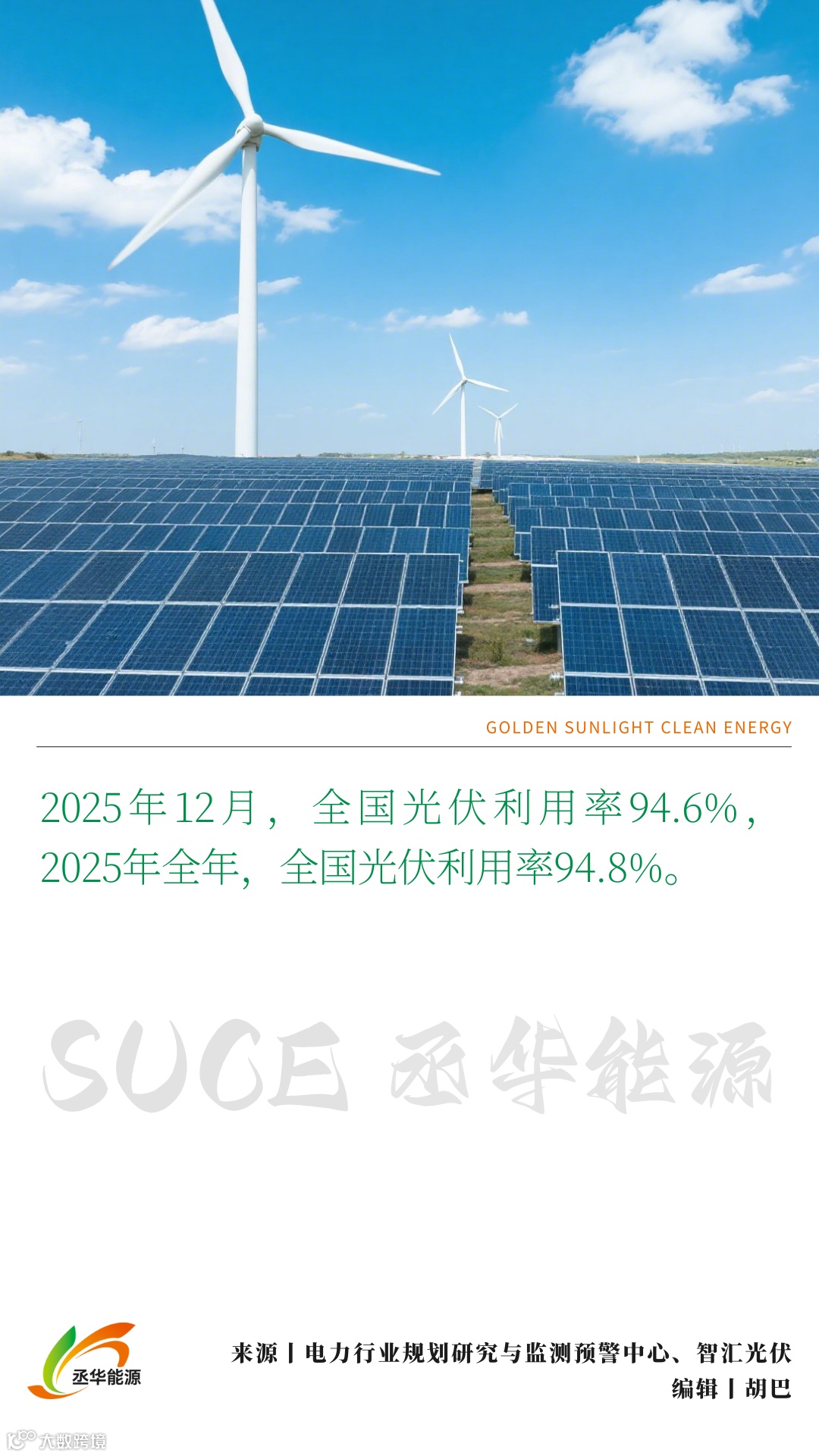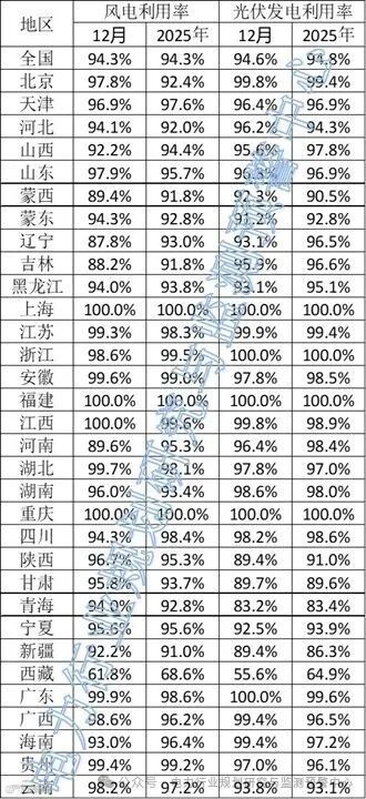 2025年12月,全国光伏利用率94.6%,2025年全年,全国光伏利用率94.8%。