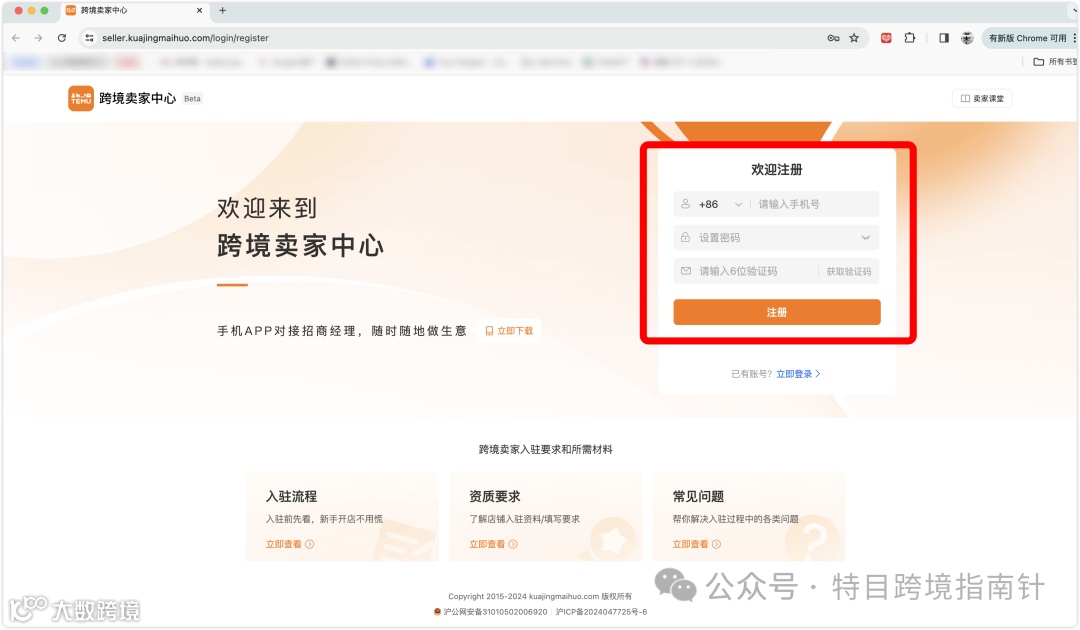 5、完成跨境卖家中心注册后,即可入驻Temu卖家中心