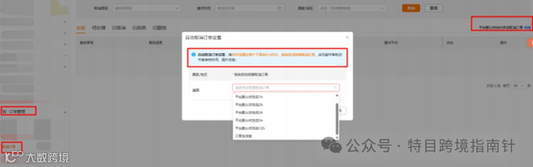 (2)注意【自动取消订单设置】:指商家可设置在用户下单后X 小时内,系统自动同意 取消订单。