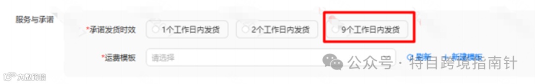 预售品的承诺发货时效,不支持选择“9个工作日内发货”。